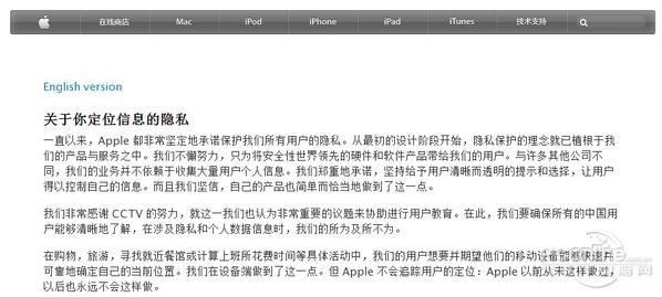 蘋果針對央視的質(zhì)疑發(fā)表聲明