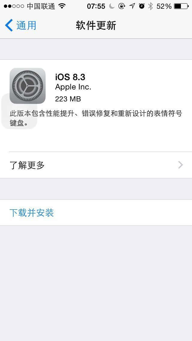 4月9日,蘋果正式發布iOS 8.3,用戶可通過OTA無線升級。iOS 8.3更新主要內容包括: