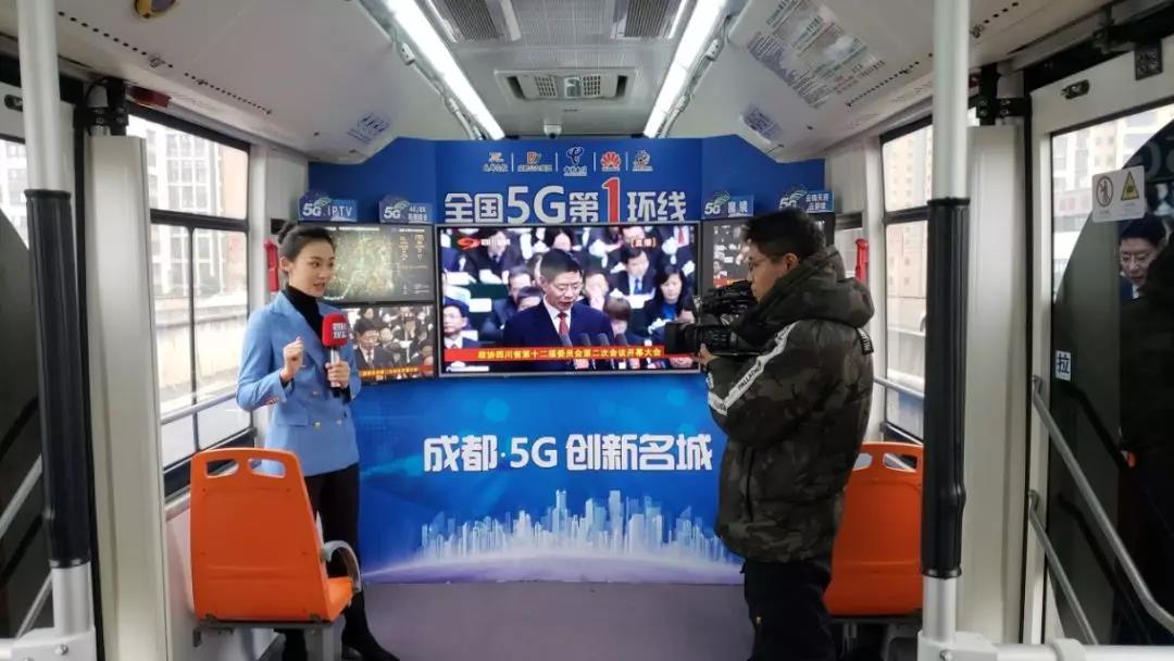 除去會場,在成都二環高架上,乘坐全國首條5G公交環線的市民,通過手機就能流暢觀看大會的實況,并且全程無卡頓。
